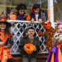 A group of young children in Halloween costumes on a front porch, representing how to protect your vision this Halloween